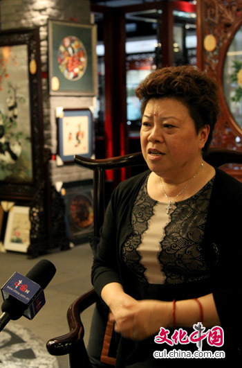 中国蜀绣非物质文化遗产传承人杨德全接受中国网记者采访(图/姬东)