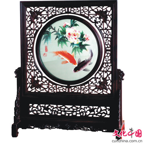 蜀绣双面绣《紫檀木芙蓉二条鱼》(图片由作者杨德全提供)
