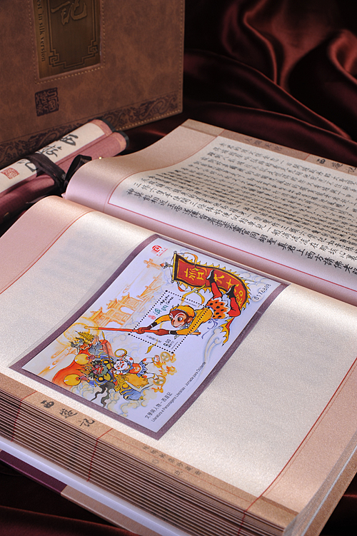 丝绸邮票珍藏册《西游记》全书经特种工艺处理,具有防腐、防蛀、防紫外线等特性,可永久珍藏。