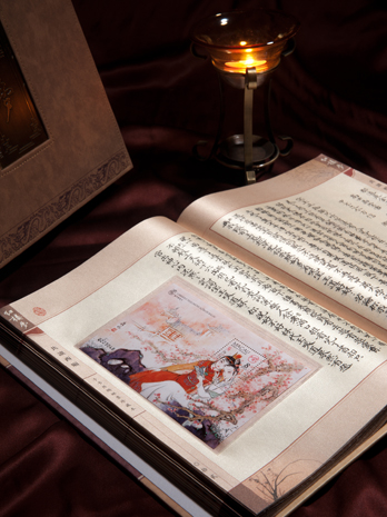 为了更好地传承《红楼梦》广博深厚的历史文化内涵,发扬其无与伦比的艺术文化魅力,倾力打造了全真丝绸邮票珍藏版《红楼梦》,该书无论从阅读、欣赏、收藏等各个角度看,都是不可多得的艺术珍品。首先,该书为集众红楼珍贵抄本精华大成之作。其内文所据底本,是现存十一种《红楼梦》古抄本中最完整、最真切地保存了曹雪芹生前定本原貌的庚辰本,同时选用了胡适先生在甲戌本(残本)前的手书题字“字字看来皆是血,十年辛苦不寻常”为开篇题词,此二本在红楼古本中堪称双璧,属国宝级文物与文献。同时,本书序文还采用了在诸多《红楼梦》序文中最具影响力的戚蓼生序,该文虽只短短476字,但却是关于《红楼梦》的第一篇评论文,是后世研究红学的必读篇章。其次,在内容选取上,本书力求以经典为标准,甄选前80回原著中最为精彩的场景,同时精炼出与每个场景主人翁相对应的诗词作为每一篇的点睛之笔。当中所用到的邮票则选取中国大陆迄今为止唯一于1981年发行的T.69 《金陵十二钗》一套12张,再结合情节需要精选澳门版邮票中的部分作品,按照故事发生发展的时间顺序编排成完整的邮票册。此外,书中出现的所有插图,均为当今国内知名仕女绘画大师刘津朱老师专为本书倾力绘制而成,笔触细腻,设色淡雅,图文并茂,达到了诗词、美文、手书、绘画、珍邮相辅相成、交相辉映的绝佳效果。