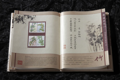 为了宏扬中华传统文化,同时也出于对“四君子”的喜爱和推崇,本公司精心设计制作了全真丝版丝绸邮票册《梅兰竹菊》系列。该邮票册采用了我公司独创的、具国内领先水平的“高分辨率全彩色真丝印制技术”和“真丝册页装订技术”。力图以中国传统的丝绸为媒质,通过展示历代名人名诗、名家书画及精心提炼的中英文介绍,再加上国内迄今为止发行的“梅花”、“兰花”、“竹子”及郑板桥系列中的“瓶菊”、潘天寿系列中的“菊竹图”等珍贵邮票,使其融丝绸文化、赏花文化及集邮收藏文化于一体,全面演绎 “梅兰竹菊”深邃儒雅的文化意义。