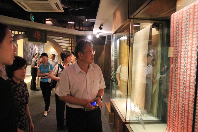 2010年 6月30日,原中央政治局委员、人大常委副委员长李铁映视察蜀锦织绣博物馆。李铁映先后参观了博物馆展示区、织机织造区,并观看了国家级非物质文化遗产“蜀锦织造技艺”传承人刘晨曦蜀锦“挑花节本”技艺的展示,与四川工艺美术蜀绣大师彭世平双面异性绣的现场刺绣演示。