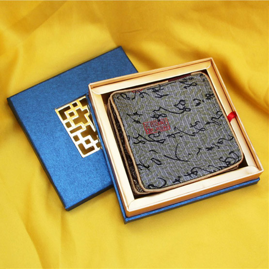 寓意:以传统蜀锦工艺手段对这幅名帖进行重新绘制,刻画,制作成杯垫,笔记本,名片夹等现代礼品。使之成为馈赠礼品中的上上品。赠送此纹样产品不仅可以体现客户身份的高贵,也带有一份人文内涵在其中。此纹样产品不仅可以体现客户身份的高贵,也带有一份人文内涵在其中。