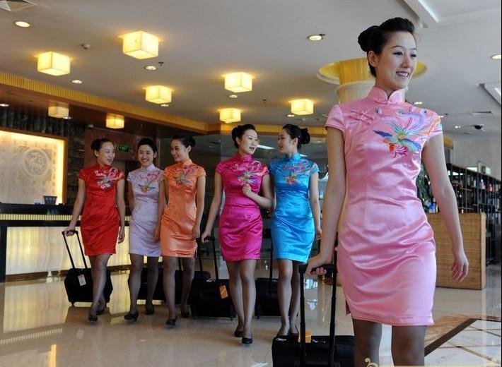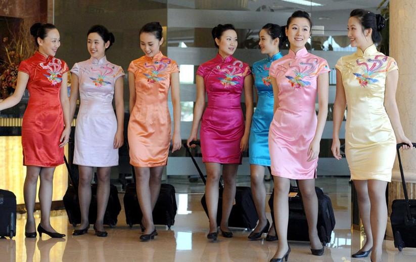 川航空姐蜀绣旗袍装亮相