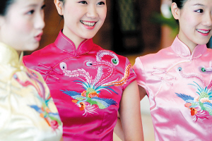 2009年6月22日,国内总装的第一架空客A320飞机即将交付。22日,将在这架飞机上为旅客提供服务的川航“祥凤”乘务组的7名空姐身着蜀绣凤凰图案的旗袍亮相天津。