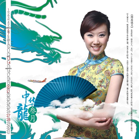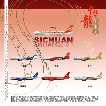 2010年,国内各大航空公司纷纷推出以美丽空姐为主题的挂历或台历,展示航空公司的品牌形象。如南航的空姐挂历展示的是优雅的制服和迷人的微笑;厦航空姐挂历将靓丽的空姐与有厦航基地布局的城市市花和地标性建筑精妙结合,极具东方特色。这次为大家精选了2010年川航空姐台历,台历主打蜀绣旗袍秀,川航航班上美丽空姐身着旗袍,婀娜多姿,引领旅客叩开古老神秘的蜀国文化之门,让人流连忘返。