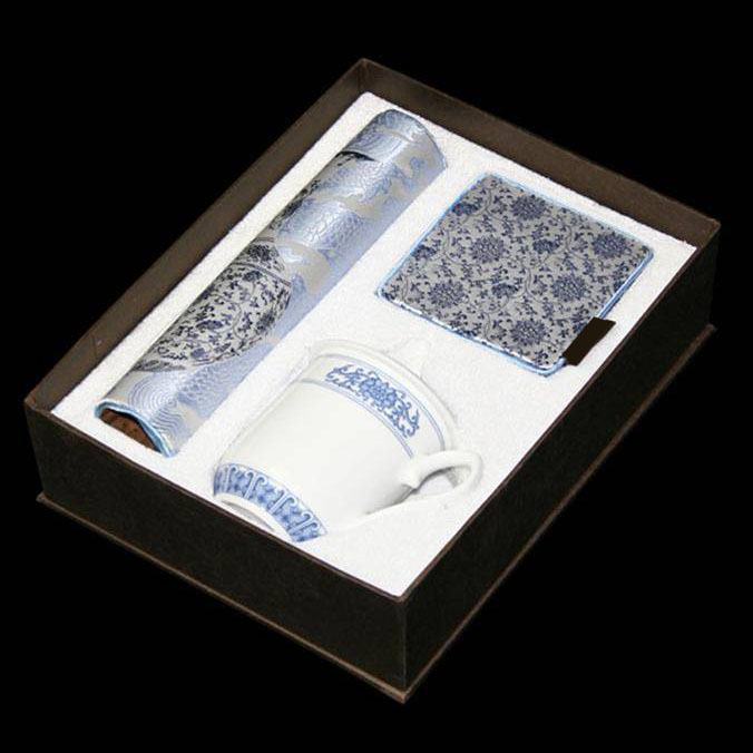 青花鼠标元代—青花的鼎盛时期。造府将元代最代表性的青花元素(龙)融入时尚的现代生活,元青花鼠标垫、玉壶春瓶、鼠标、瓷杯、杯垫,系列单品自由组合搭配,彰显文化品味,满足您客户不同商务用礼场合的需求。