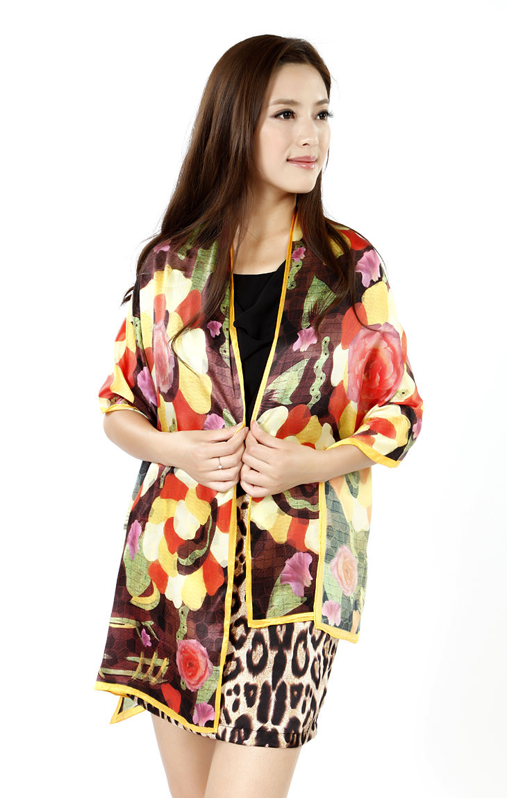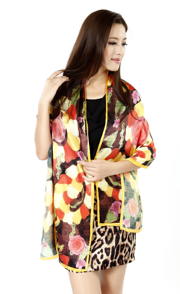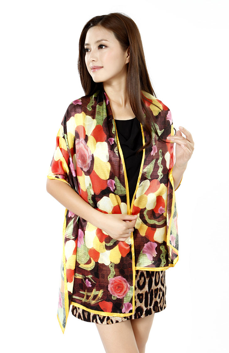 1、丝巾 具有薄而透气,采用较细的丝物平纹织成,透气性好又温暖,手感凉爽。丝巾,这个经典的配饰从来不甘于沉寂。它的魅力就在于会随时随地摇身一变,从明艳欢快到成熟华丽,从恬静娇美到典雅高贵。