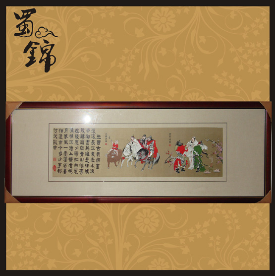 蜀锦是采用传统民族织造技艺生产的锦画发展历史:蜀锦距今有两千年历史,汉唐步入鼎盛时期,并在1908年获得巴拿马博览会金奖,1917 年在南洋博览会上夺得国际金奖,1937年又在美国纽约博览会获得“东方美人”奖。2006年蜀锦传统技艺被国家授牌为非物质文化遗产。