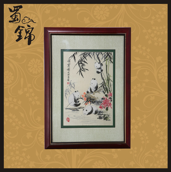 【产品说明】:此款立轴蜀锦系列,大熊猫是最珍稀的动物,是和谐、友谊、和平的象征,是世界上最珍贵的动物之一,数量十分稀少,属于国家一级保护动物,体色为黑白相间,被誉为“中国国宝”。大熊猫憨态可掬的可爱模样深受全球大众的喜爱,在1961年世界自然基金会成立时就以大熊猫为其标志,大熊猫俨然成为物种保育最重要的象征,也是中国作为外交活动中表示友好的重要代表。